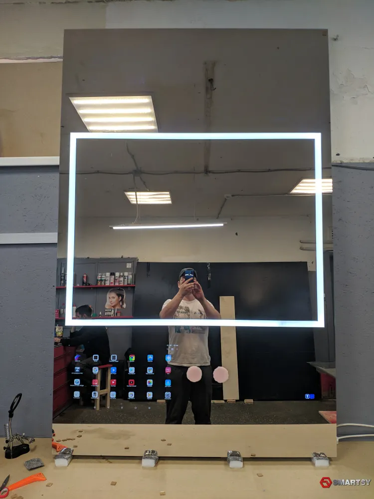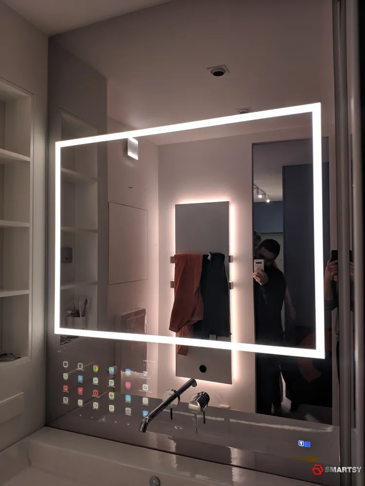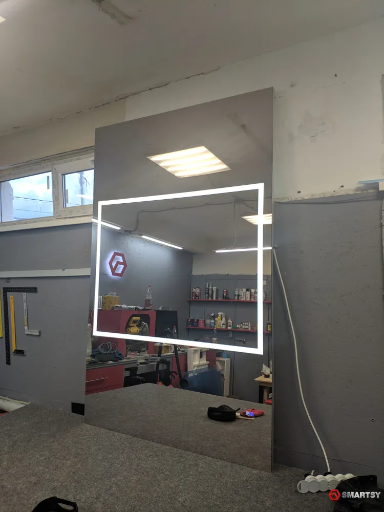 Толщина данного зеркала всего 29 мм и это при том, что размеры его 1850х1200 мм!