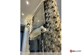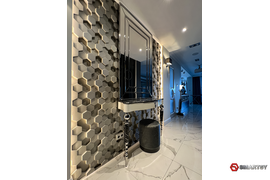 Шикарное зеркальное панно в рамке из нержавейки в прихожей
