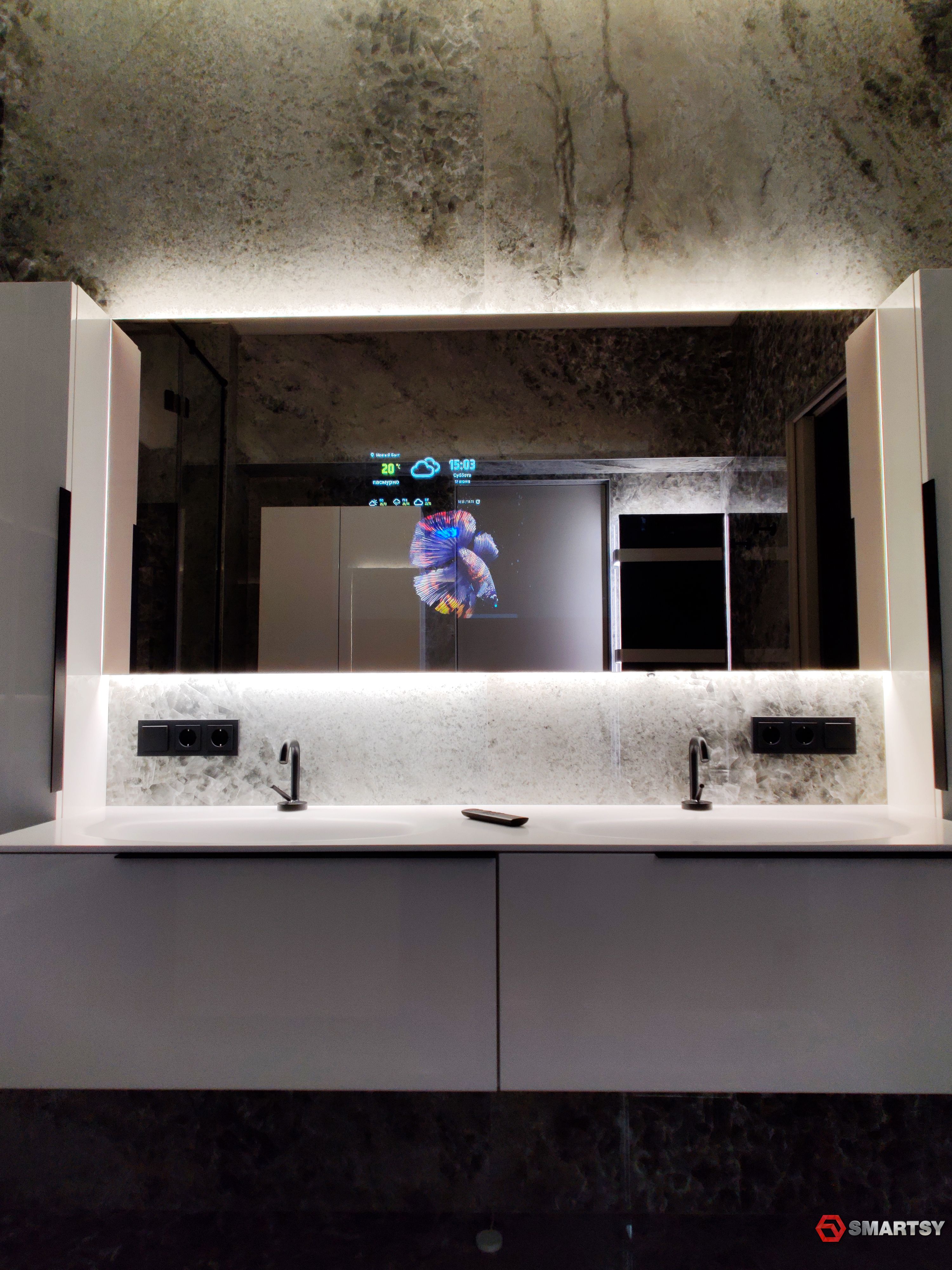 Ширина1200 ммВысота800 ммРазмещениенастенноеЦвет рамынетПроизводительSmartsyФормапрямоугольнаяРаманетДля ваннойестьПодсветкаестьwi-fiестьBluetoothестьВстроенные стерео динамикинетТолщина40 ммВерсия модификацииSmartsy HarmoniQ SimpleРазмер дисплеяДиагональ 15,6" - 395х195 ммКласс дисплеяэконом FHD, яркость до 250 Кд/м2Системные характеристикиAmlogic S905X4 четырех ядерный Cortex-A55, LPDDR4 4 Гб и 32 Гб (EMMC)Фронтальная светодиодная подсветка зеркалаНетДекоративная рамка (оправа зеркала)НетВстроенная камераНетОриентация размещенияГоризонтальноеПыле-, влаго-защита для эксплуатации в ваннойЕстьОперационная системаAndroid 11Единица измеренияштВес в упаковке, кг50