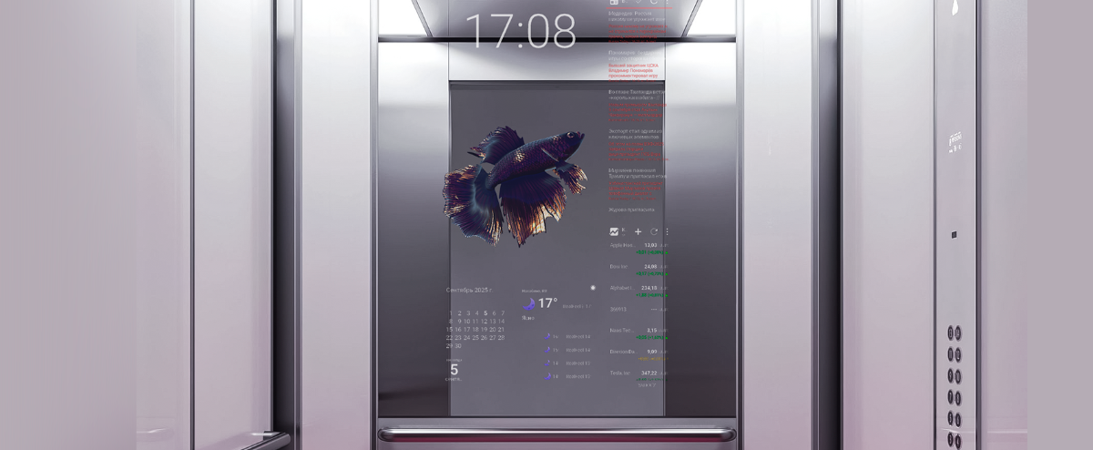 Наше умное зеркало для лифта — это безупречный симбиоз элегантного дизайна и передовых технологий. Мы создаем решения, которые идеально интегрируются в интерьер любого лифта, работая на ваши бизнес-цели и повышая комфорт.